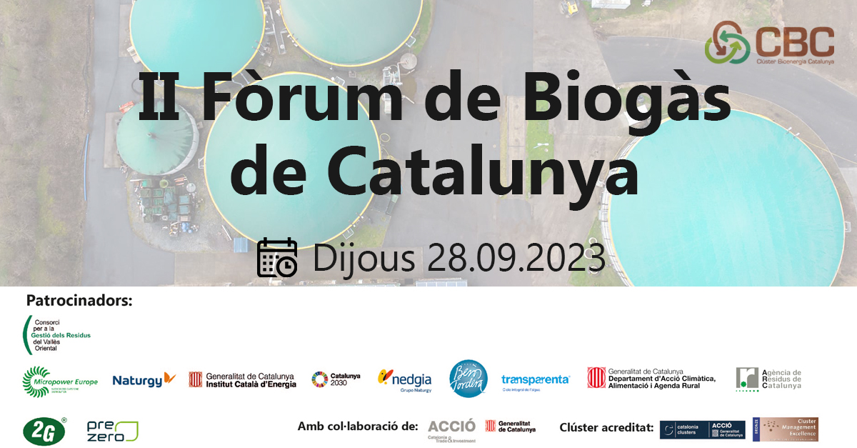 II Fòrum de Biogàs de Catalunya Programa: Programa_ForumBIOGAS (clusterbioenergia.cat) Inscripcions: Pàgina d’inscripció per II FÒRUM DE BIOGÀS DE CATALUNYA (inscribirme.com) + Afegir Google Calendar + Exportació iCal / Outlook Data 28|09|23 ¡Caducat! Hora 9:00 - 16:00 Localització Granollers Categoría Fòrum Organitzador Clúster Bioenergia de Catalunya Compartir aquest esdeveniment