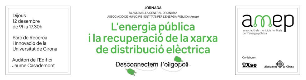 Com ja s’havia avançat a l’anterior assemblea i pels diferents canals de l’Associació de municipis i entitats per l’energia pública (Amep), el 12 de desembre tindrà lloc la Jornada “Desconnectem l’oligopoli: L’energia pública i la recuperació de la xarxa de distribució elèctrica“, un punt de trobada per a representants municipals, persones expertes i entitats per abordar la necessitat de recuperar la titularitat pública de la xarxa elèctrica. La jornada, que tindrà lloc a l’Auditori Jaume Casademont de l’Universitat de Girona, donarà el tret de sortida amb la 8ª Assemblea General Ordinària de l’Amep, continuarà amb la presentació de la “Declaració de Girona per una Xarxa de distribució d’electricitat pública” i amb la proposta de modificació del marc jurídic per afavorir aquesta transició.