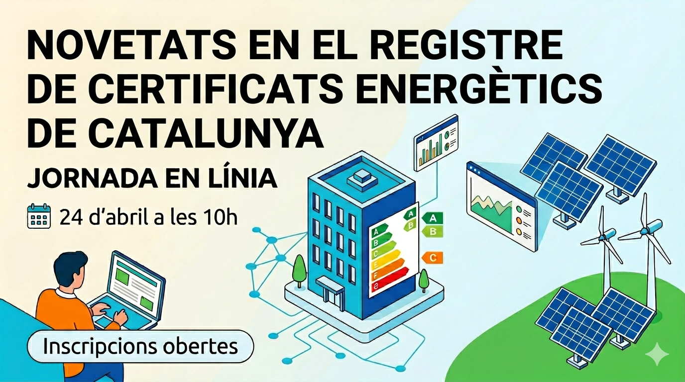 Jornada en línia per presentar les novetats en el registre de certificats energètics de Catalunya impulsades per l’Institut Català d’Energia (ICAEN). S’hi exposaran les millores en els tràmits amb a un nou format més àgil i accessible, així com el redisseny del cercador de certificats i de l’informe de despesa energètica per facilitar-ne la comprensió.