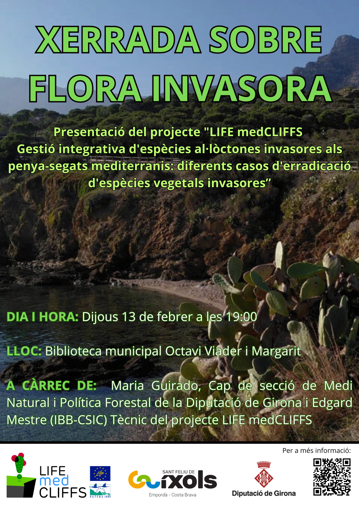 A càrrec de: Maria Guirado, Cap de secció de Medi Natural i Política Forestal de la Diputació de Girona i Edgard Mestre (IBB-CSIC) Tècnic del projecte LIFE medCLIFFS.