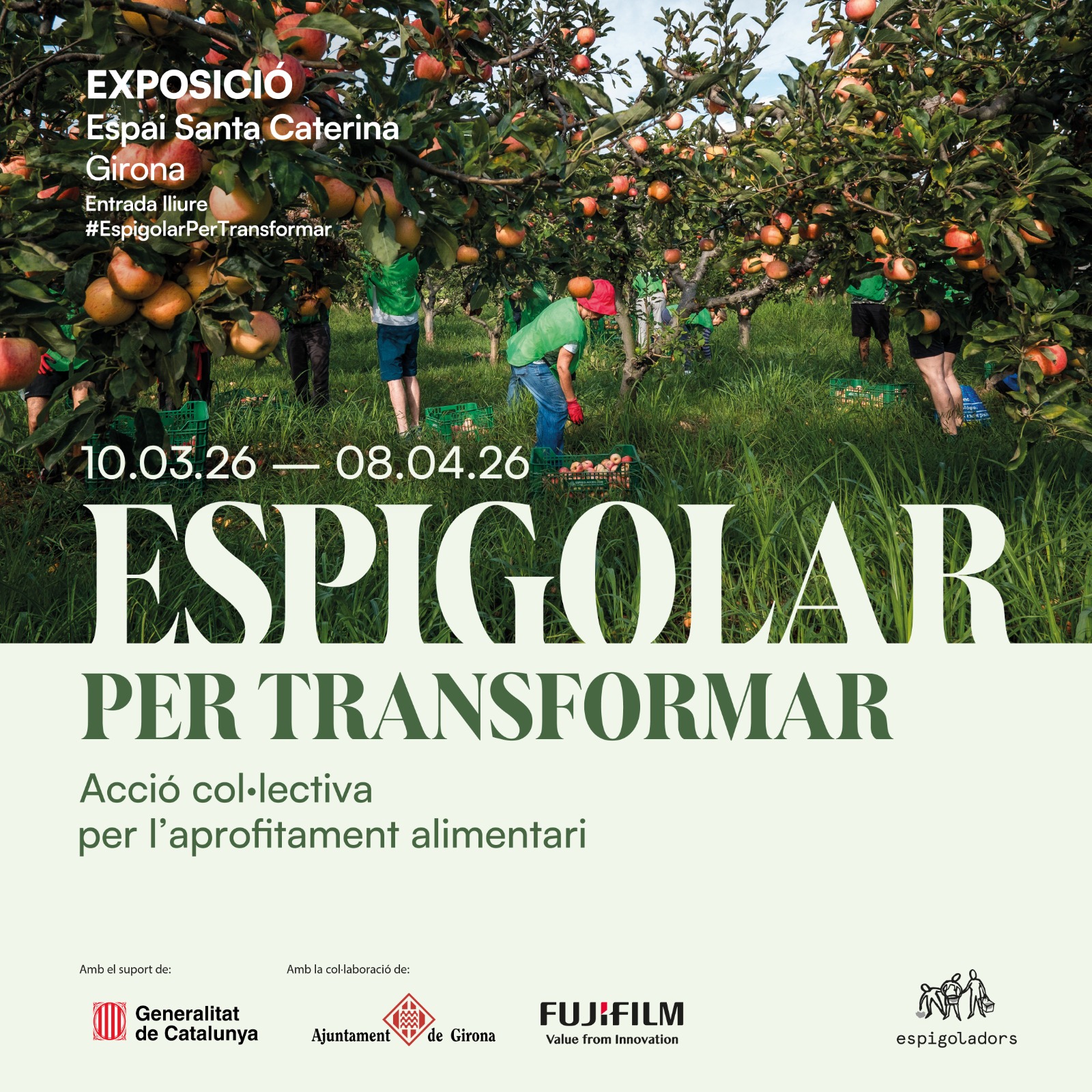 Del 10 de març al 8 d’abril, Girona acollirà l’exposició “Espigolar per transformar”, una iniciativa de la Fundació Espigoladors que compta amb el suport de la Generalitat de Catalunya i l’Ajuntament de Barcelona, i la col·laboració de Fujifilm. La mostra vol promoure la sensibilització i l’acció davant les pèrdues i el malbaratament alimentari, especialment en l’àmbit de la producció primària.